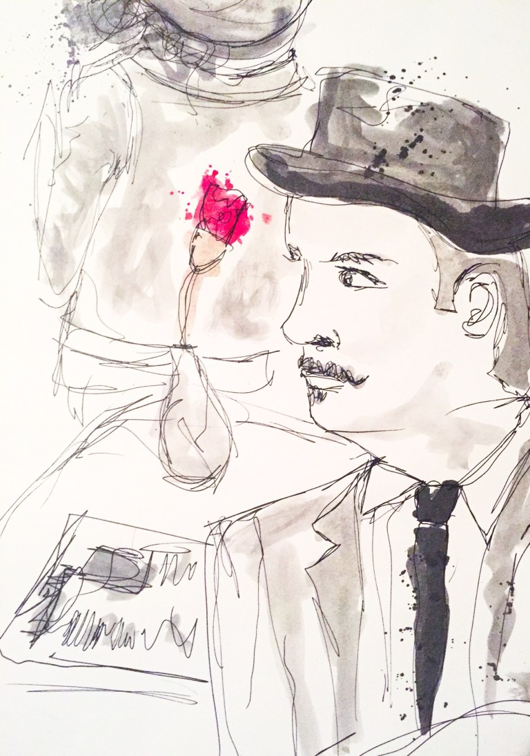 Last Friday couldn’t have come around soon enough. I love going to my Drink & Draw classes in New Mills. And yet again Andrea’s creativity and imagination didn’t disappoint 🙂 I’m always chatting with my friends, playing detective and trying to work out what’s happening in the story 🙂 I laughed my head off when I saw that Hector from the July instalment wasn’t dead… I knew it! 🙂