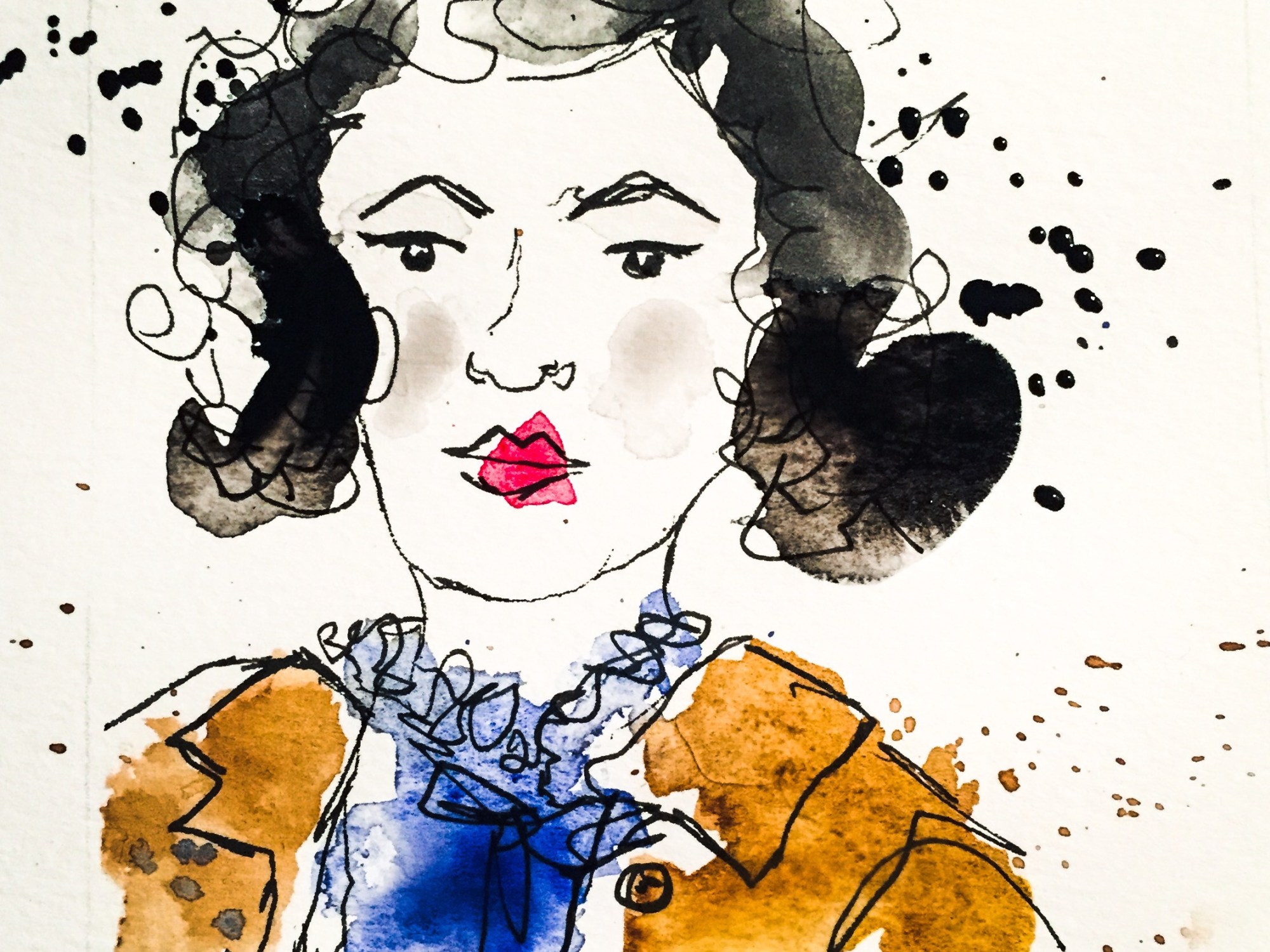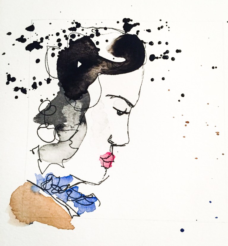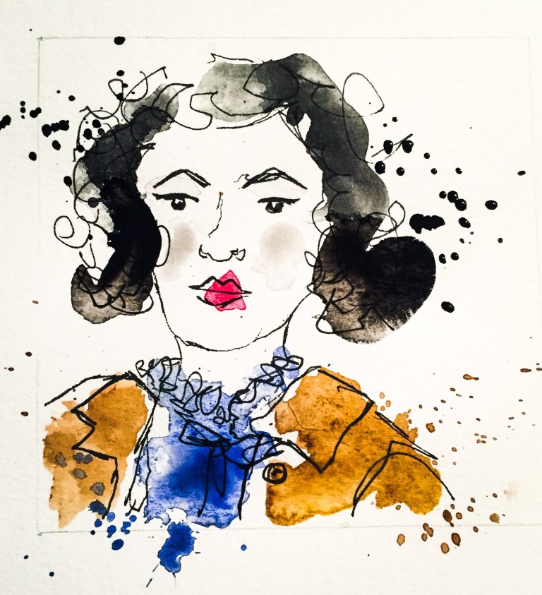 I was made up to be asked to go to my friends special vintage tea party, for her big birthday celebrations this weekend. Miriam is such a lovely lady and a model from the Drink & Draw classes I go to. I wanted to draw a picture of her for her pressie and this is what I created…