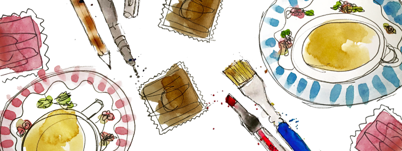 Time flew while we were there, then we had to (reluctantly) go back to get changed. On to The Plaza for some delicious afternoon tea. The doodlers had the drawing bug and kept on scribbling away when we were at the table! (I ate cake and drank wine 😉 – chin chin).