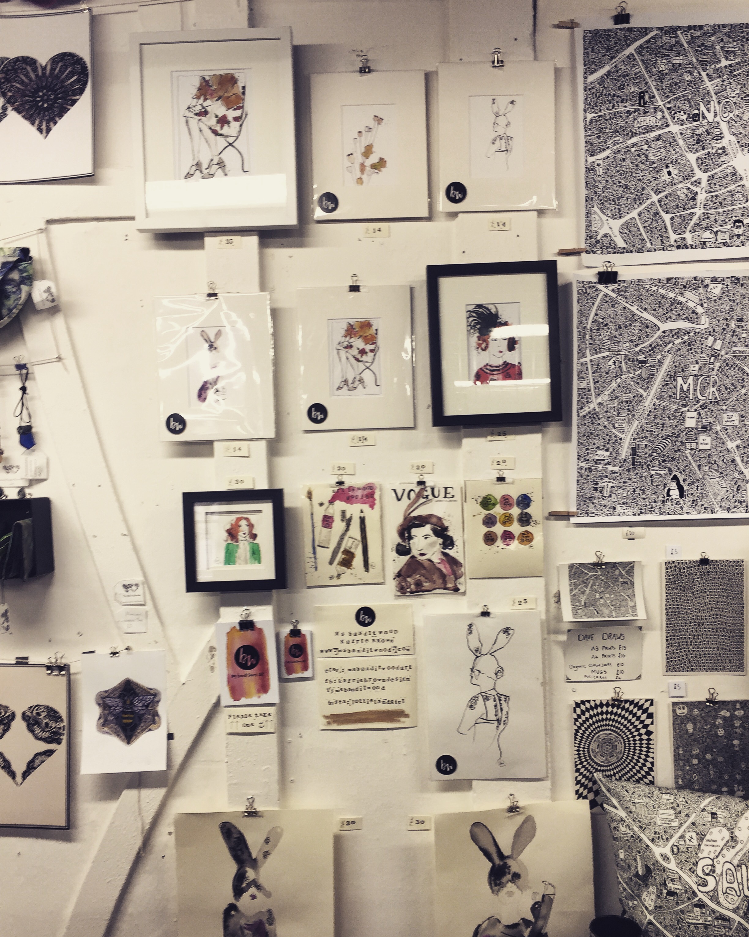 Today’s my second full day holding the fort at SWALK Creative in Affecks (3rd floor), Manchester. It’s a buzzing place – I love it! My work is now set up on the wall.