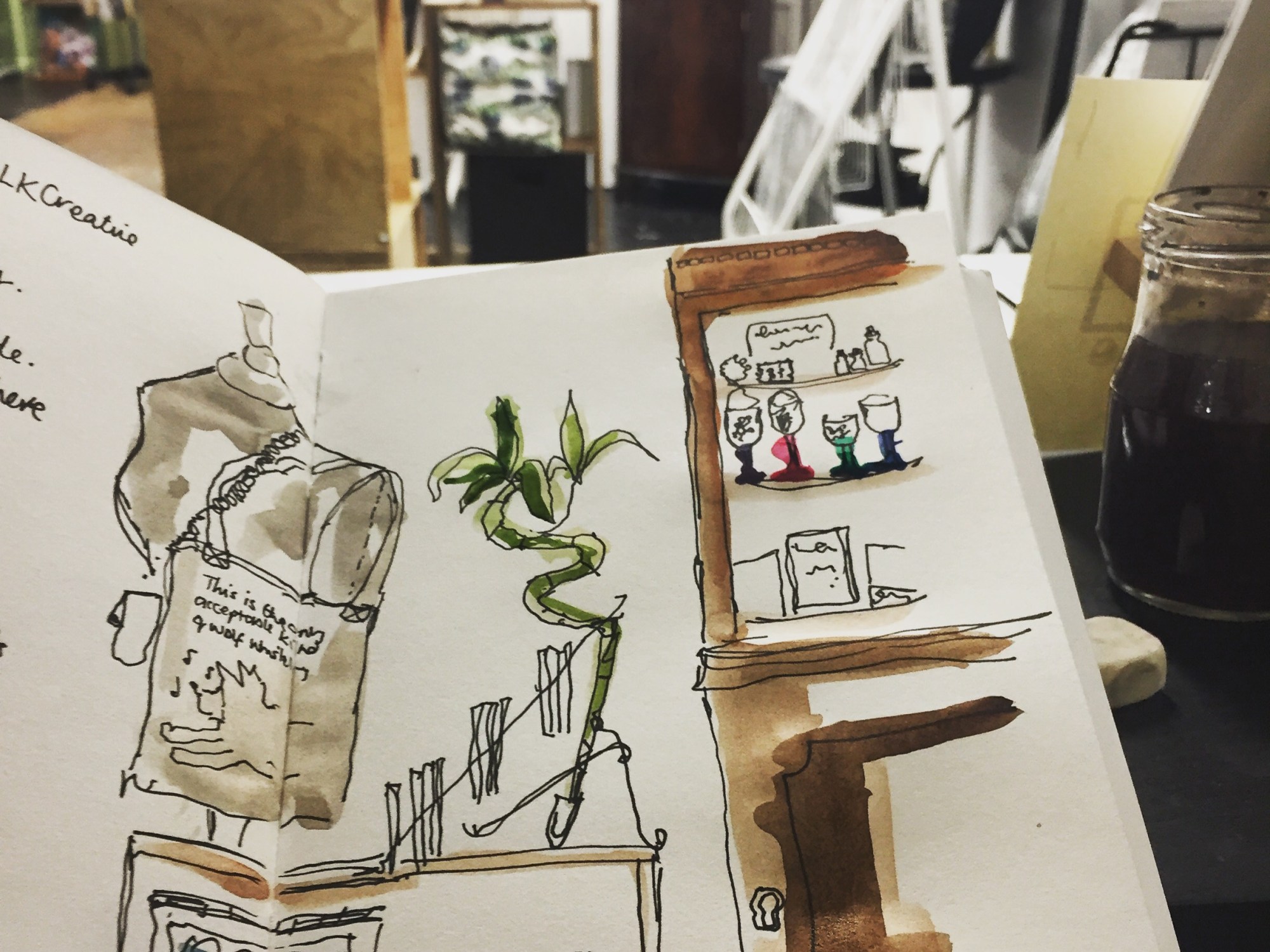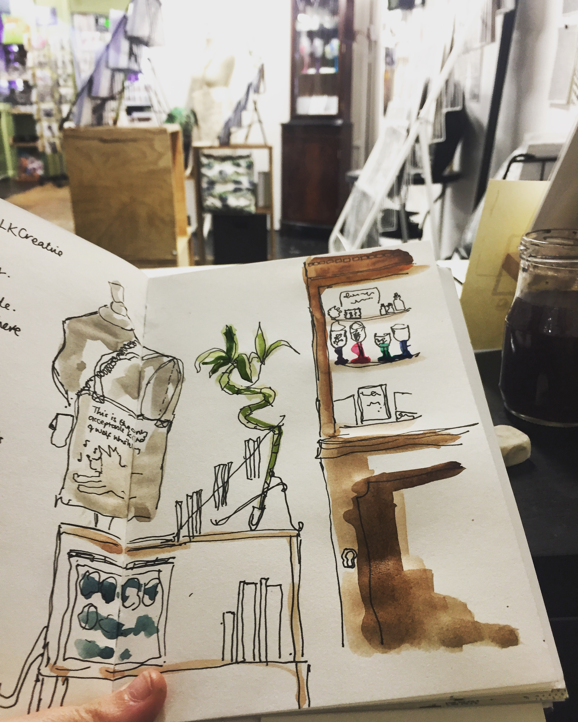 I work here one day a week on random days (I’ll keep you posted when, on my Facebook page) As a freelancer, it does get a bit lonely at home. So this is a great opportunity for me to meet new people and be in a buzzing atmosphere π I drift off into a parallel universe and draw all day, expanding my range. Best job ever, I’m so happy π