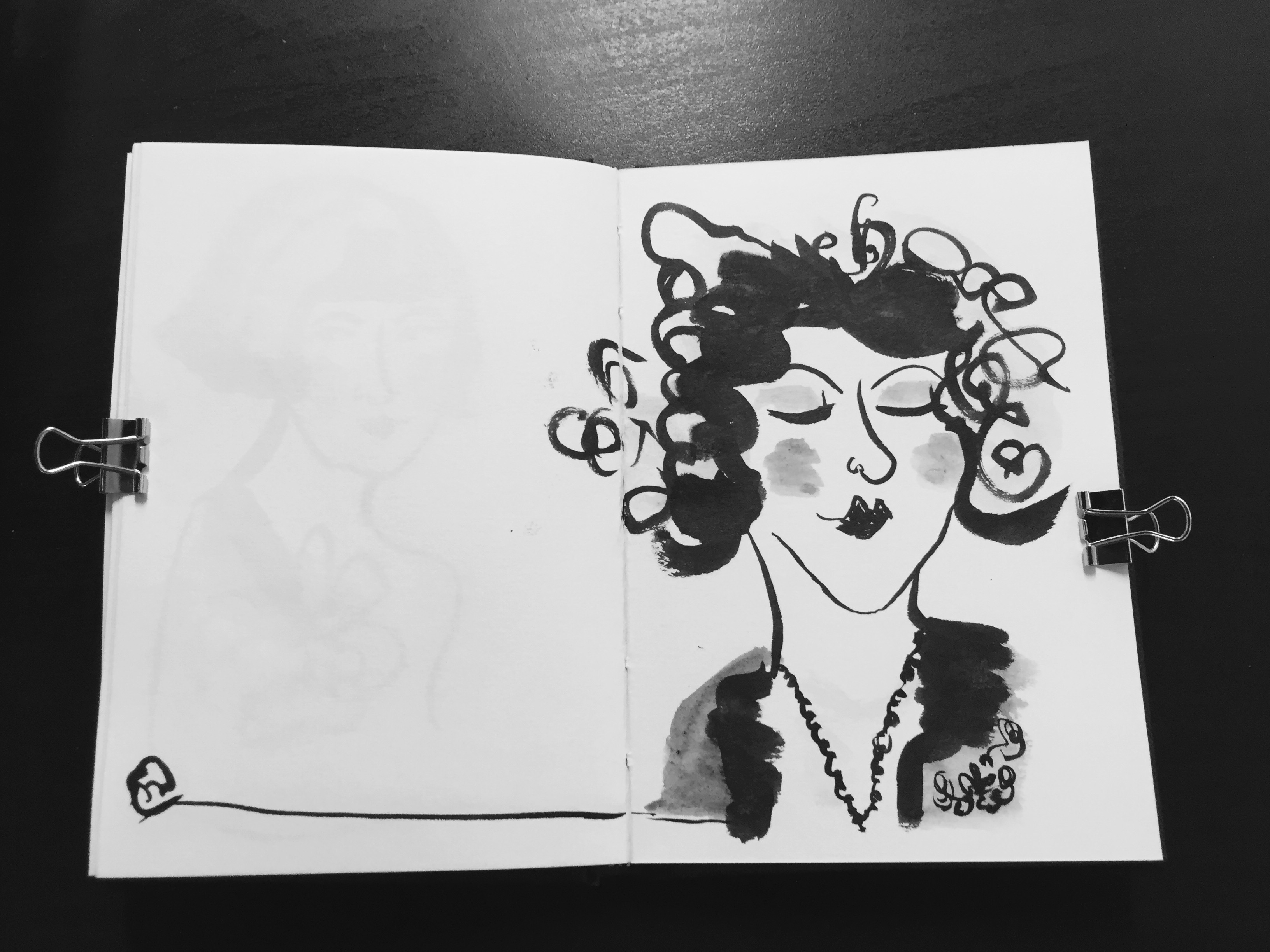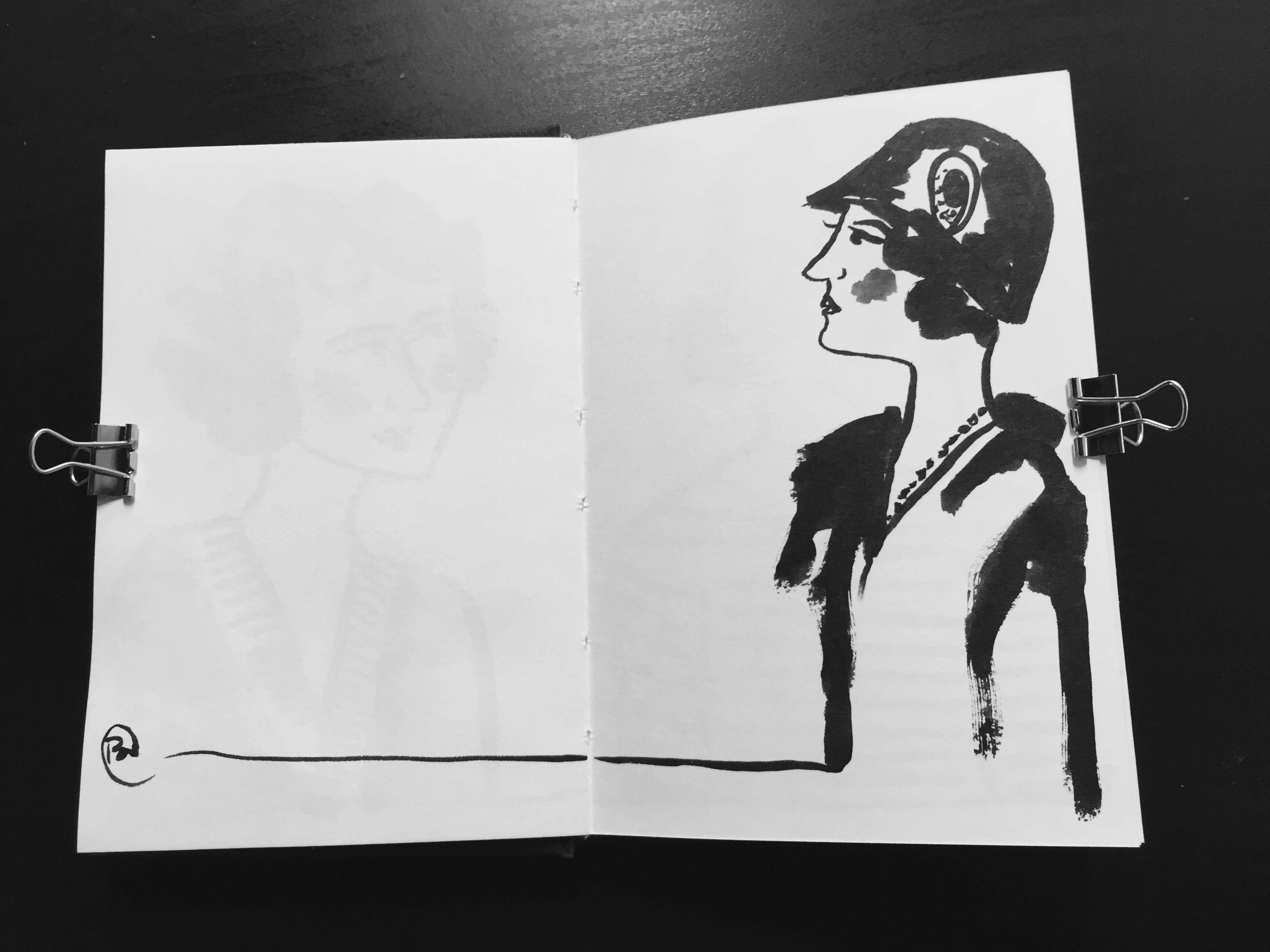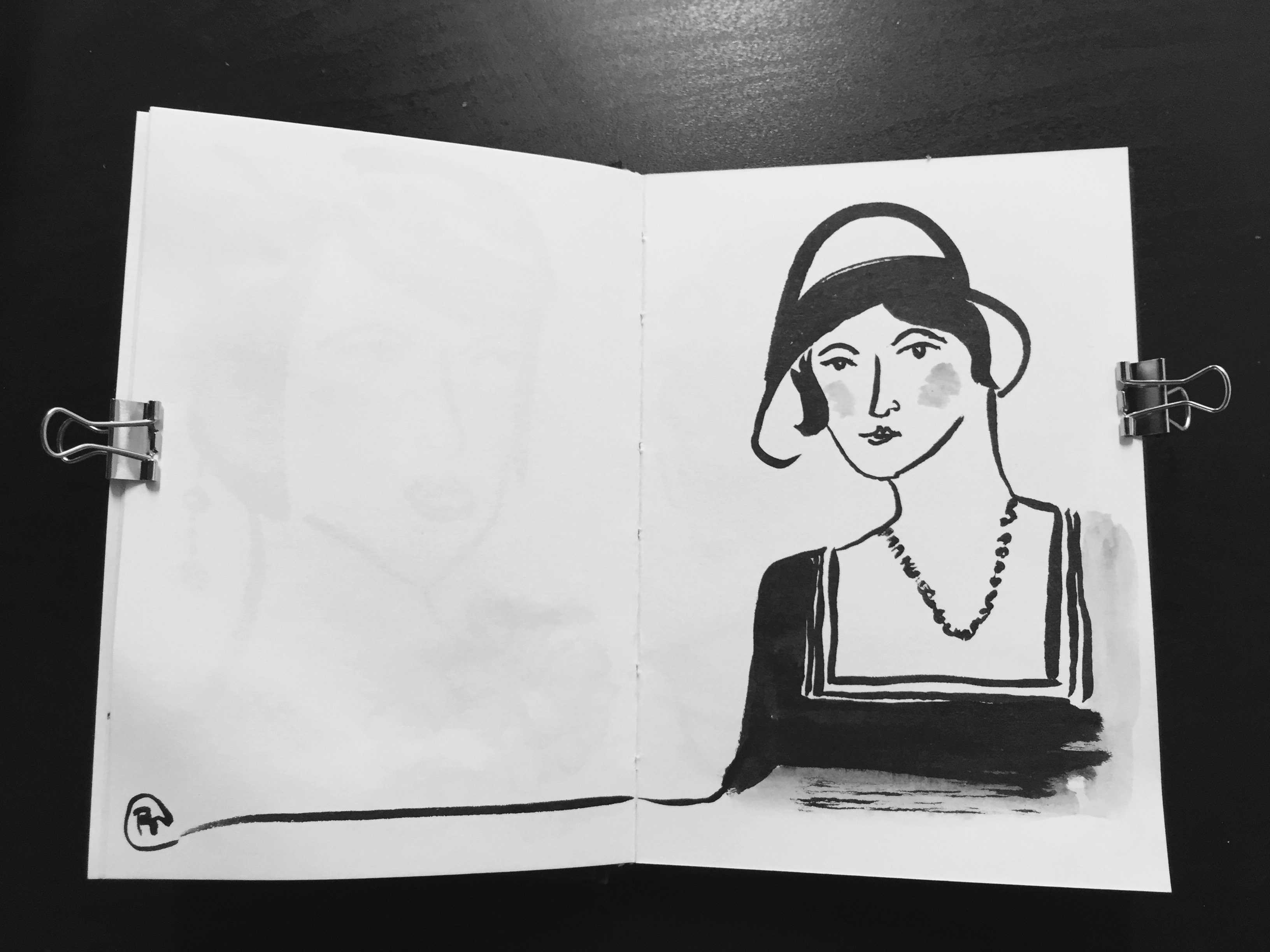 Well I’ve decided to use my Pentel brush pen and try it out drawing ladies from the 1920’s era. I find it hard to control the pen but like the thick and thin lines. I’ve used a water brush too to blend in in areas. Here’s what I’ve come up with…