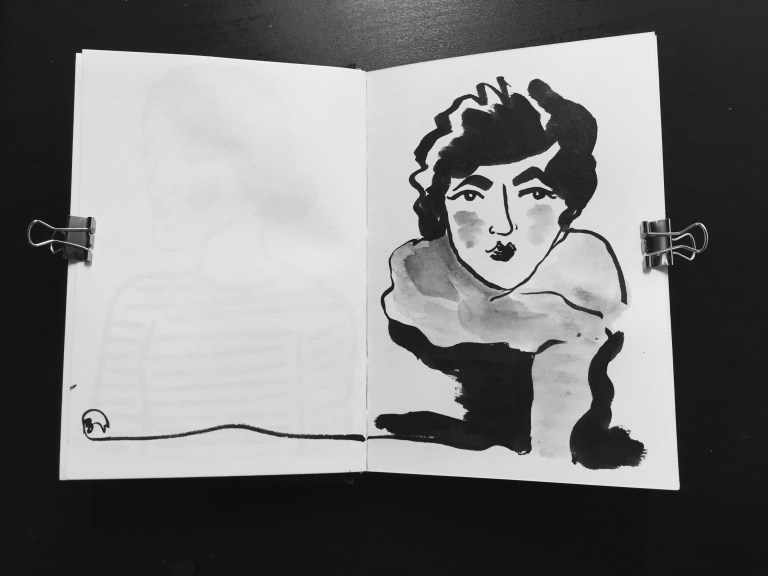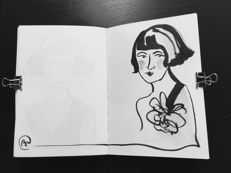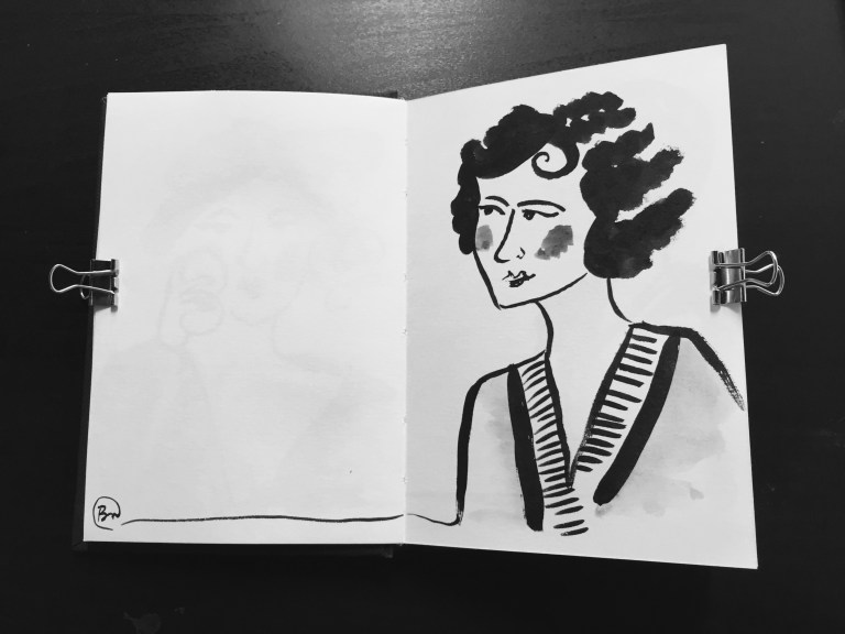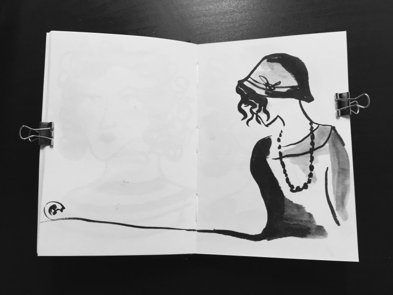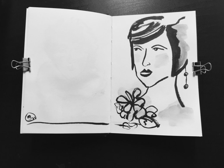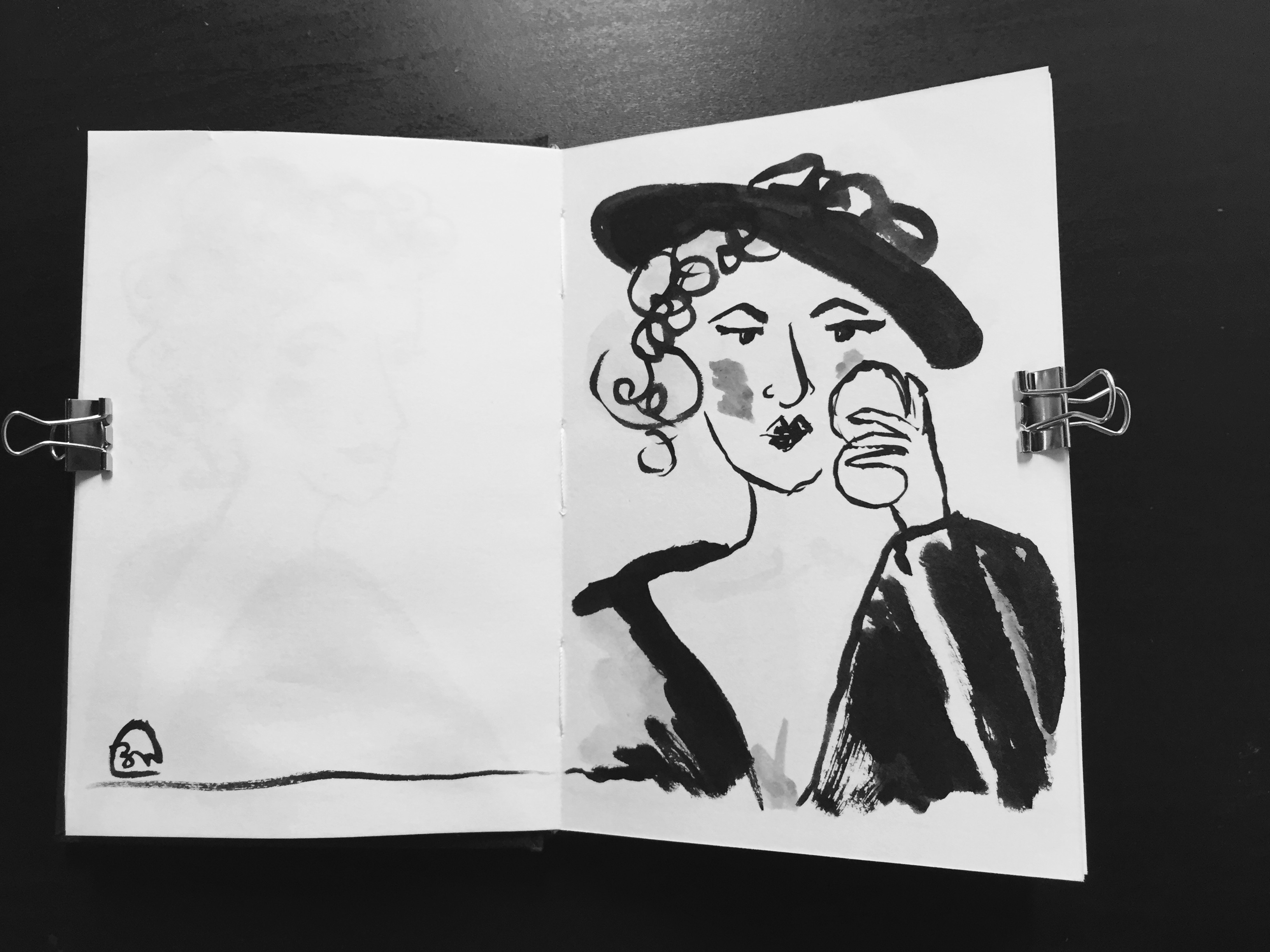 Well I’ve decided to use my Pentel brush pen and try it out drawing ladies from the 1920’s era. I find it hard to control the pen but like the thick and thin lines. I’ve used a water brush too to blend in in areas. Here’s what I’ve come up with…